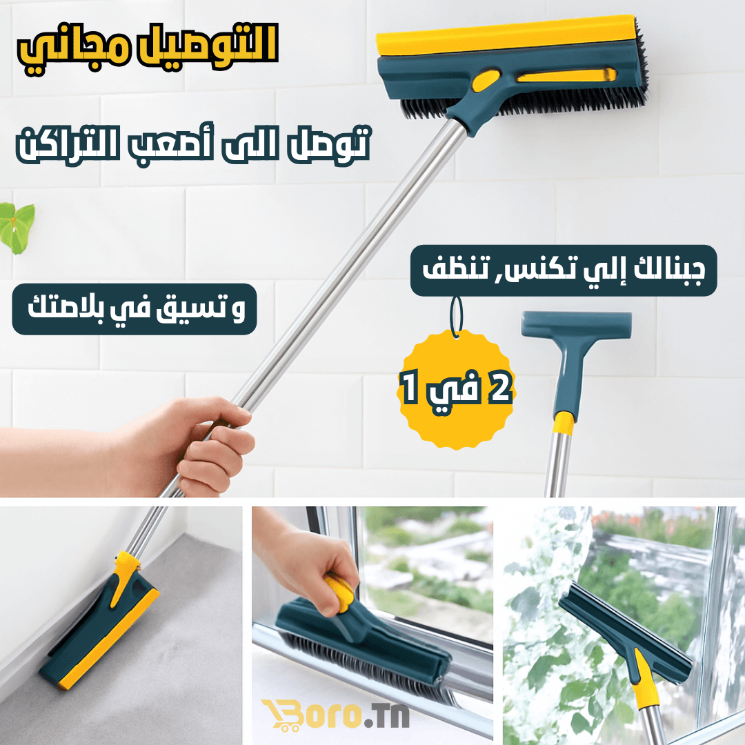 الفرشاة هذي تسهل عليك الخدمة. الممسحة اللي فيها تشفط الماء الزايد وتخلي الحيوط القاعة والبلار يلمعو