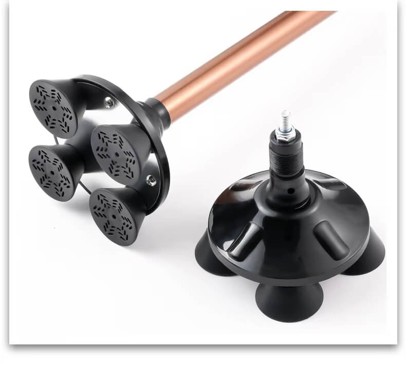 يقوم العكاز السحري على محور ارتكاز يجعل من السهل السير به على الأسطح المختلفة بدرجة عالية من الأمان