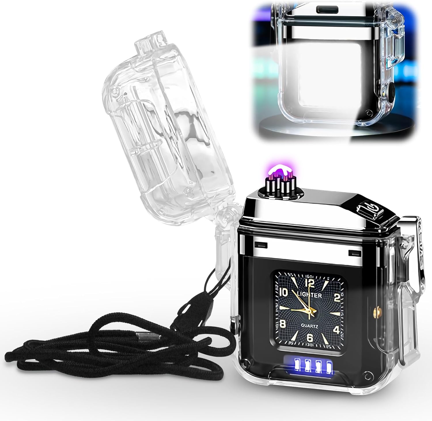 حافظة شفافة مع غطاء ولاعة محكم الغلق بحلقة معدنية ومشبك قفل، لا يتسرب الماء من الداخل