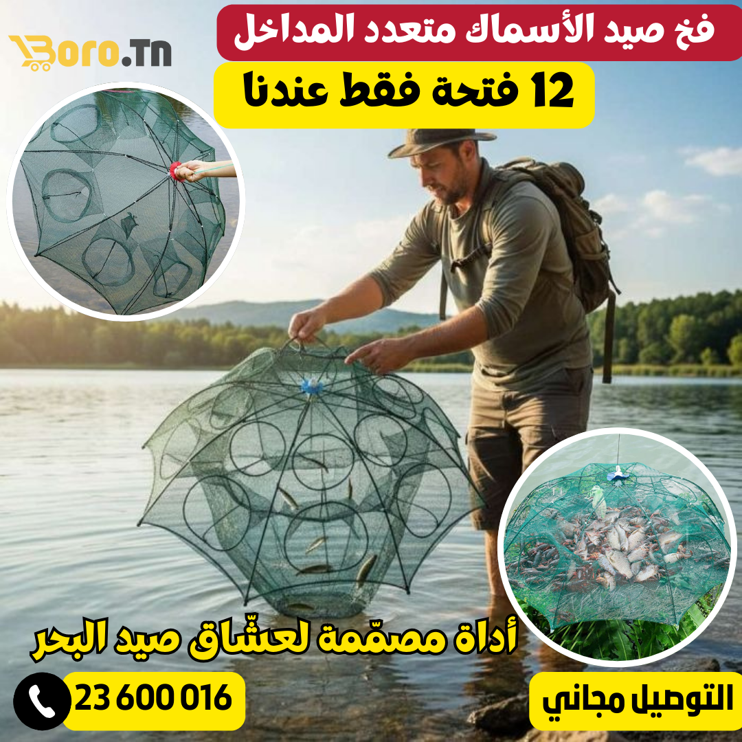 🐟 شبكة صيد أوتوماتيكية قابلة للطي (12 فتحة)